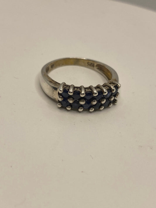 Vintage Blue Sapphire 925 Sterling Silver Ring Size 7
