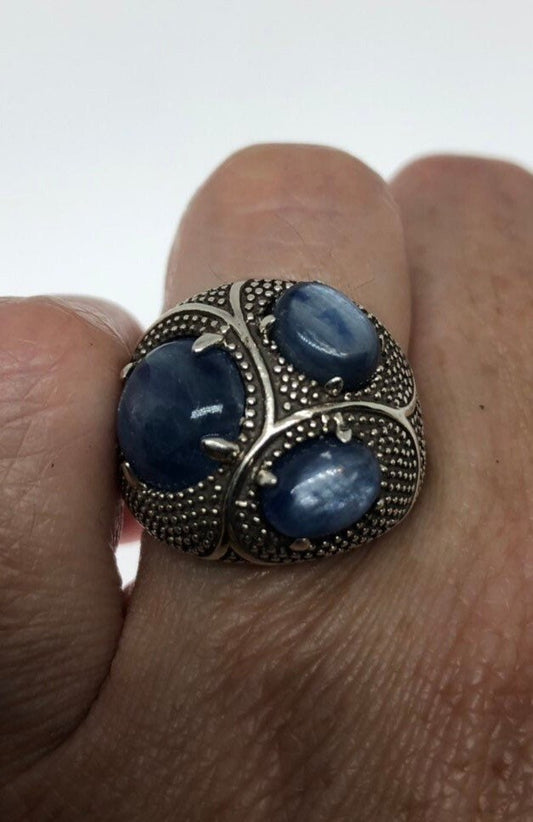 Vintage Blue Sapphire 925 Sterling Silver Gothic Ring Size 9
