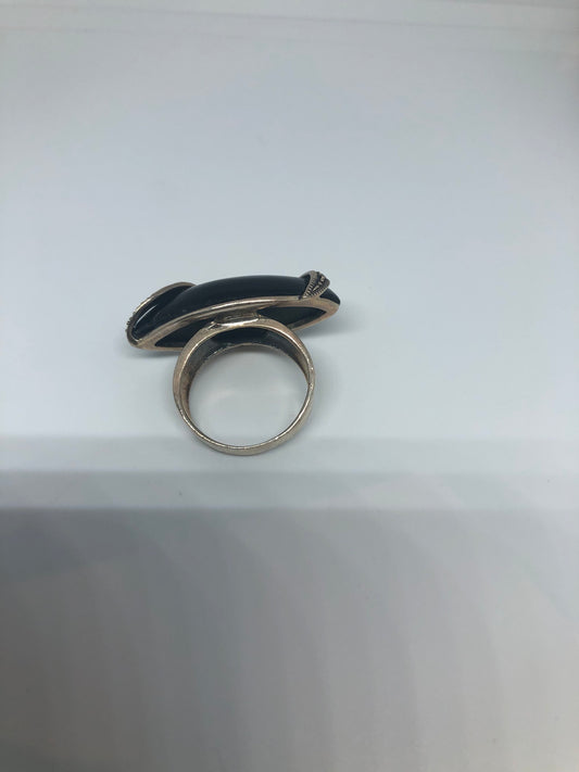 Vintage Genuine Black Onyx Silver marcasite Ring