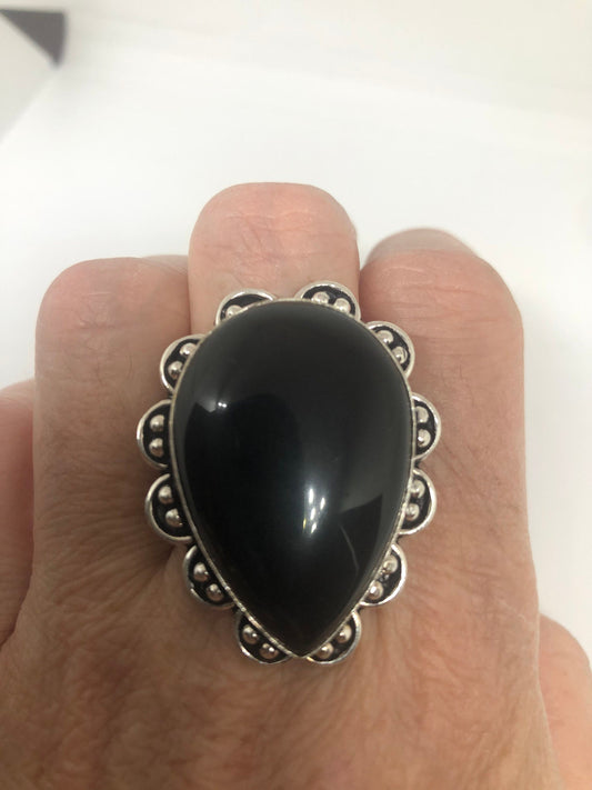 Vintage Genuine Black Onyx Silver Ring Size 8.5