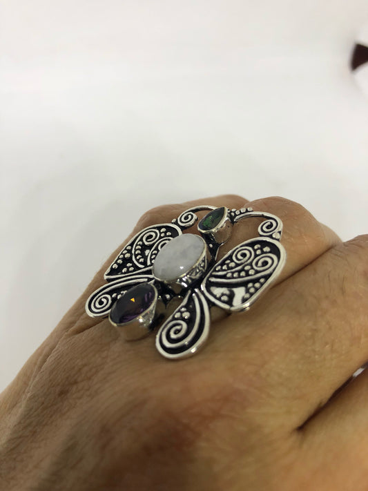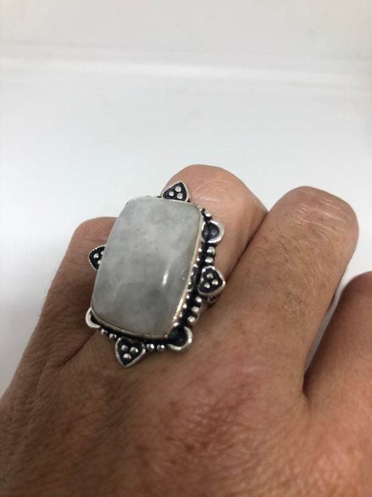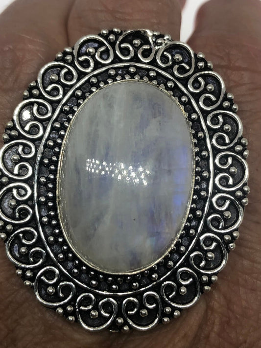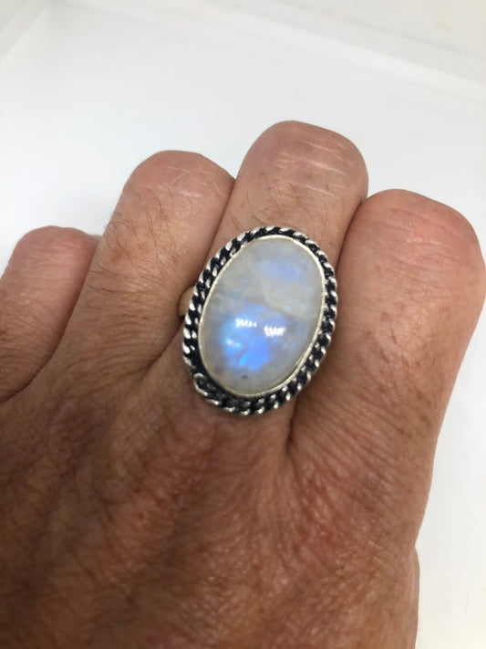 Vintage Genuine Blue White Rainbow Moonstone Ring