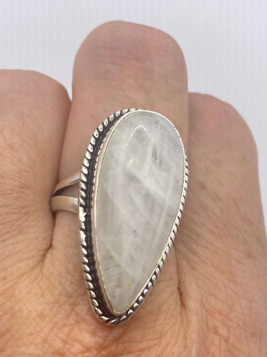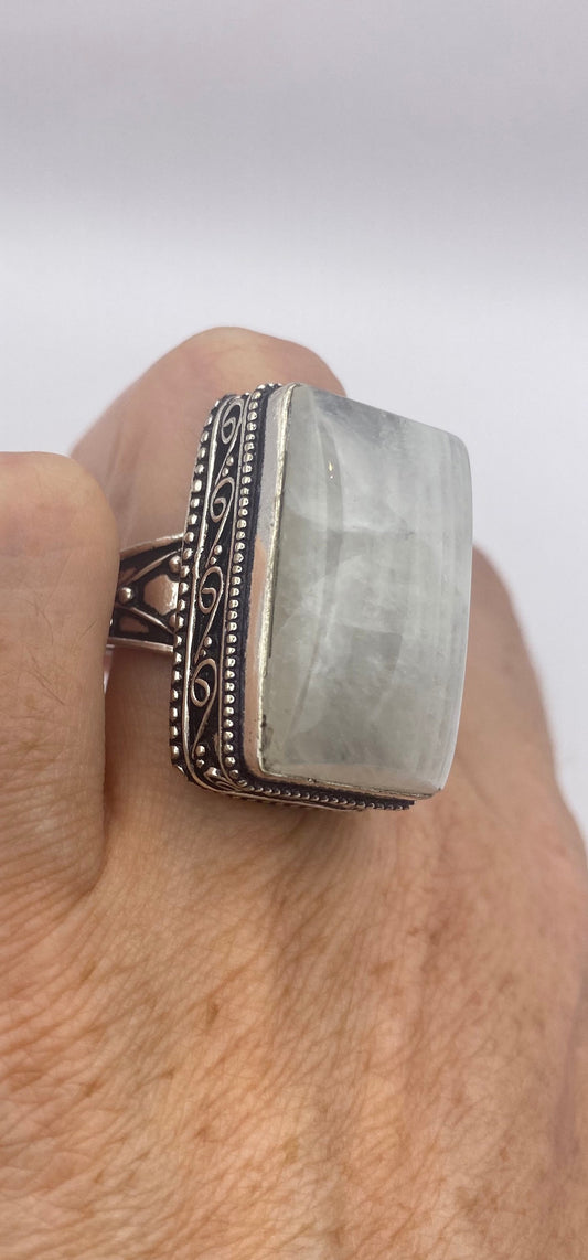 Vintage Genuine Blue White Rainbow Moonstone Ring Statement Cocktail Size 6.75