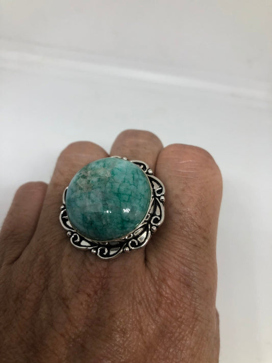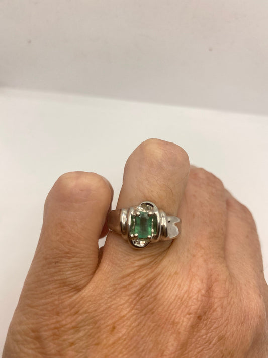 Vintage Genuine Green Emerald Ring 925 Sterling Silver Engagement Wedding