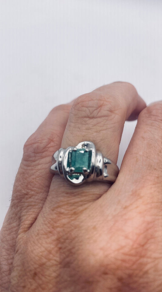 Vintage Genuine Green Emerald Setting 925 Sterling Silver Band Ring