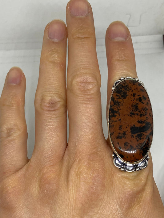 Vintage Genuine Rose Quartz And Topaz Ring Silver Statement