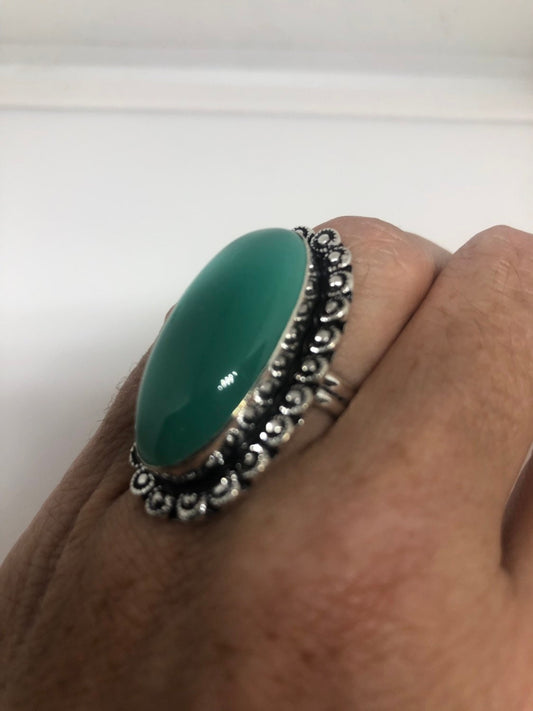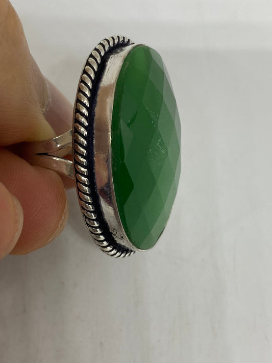 Vintage Green Aventurine Ring 925 Sterling Silver