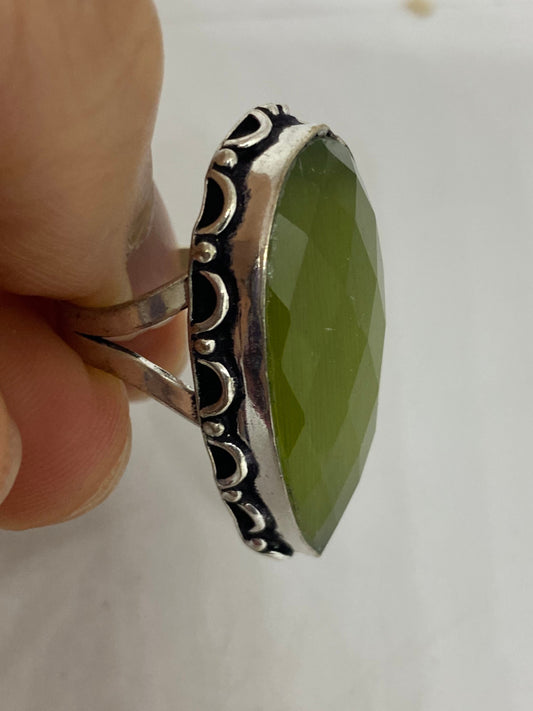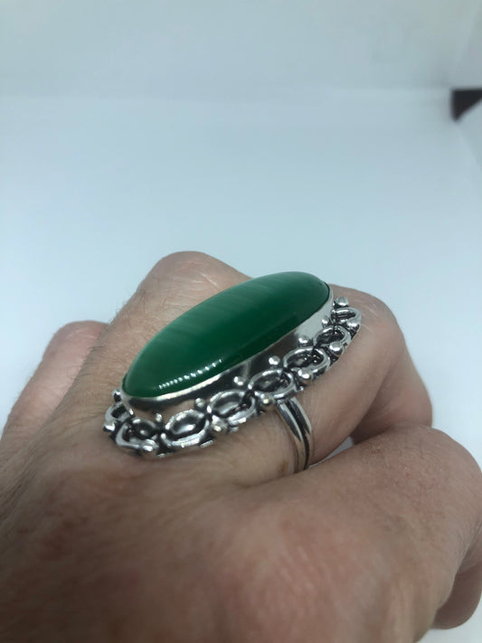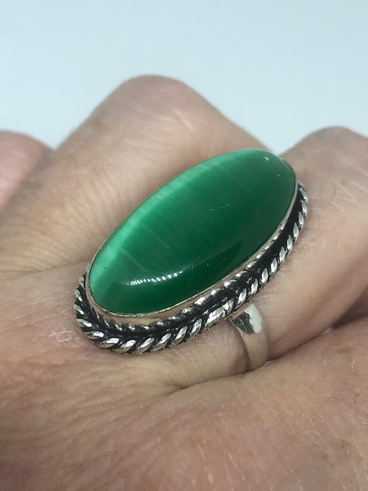 Vintage Green Cats Eye Art Glass Ring Size 7.5