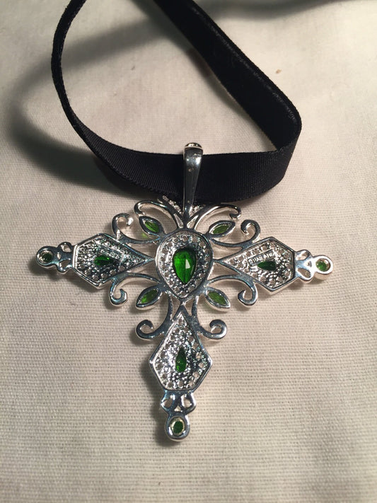 Vintage Green Chrome Diopside Choker 925 Sterling Silver Cross Pendant