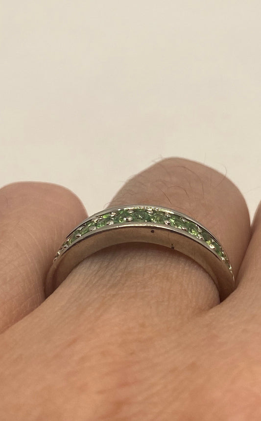 Vintage Green Chrome Diopside Band Setting 925 Sterling Silver Ring