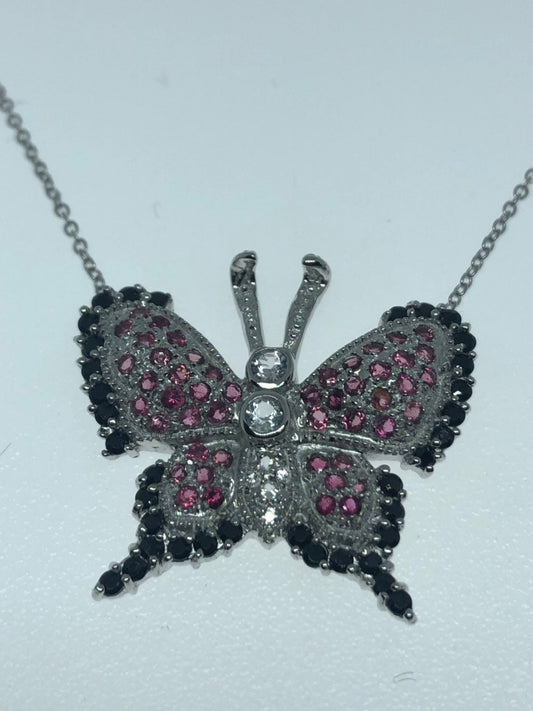 Handmade 925 Sterling Silver Vintage Genuine Gemstone Butterfly Choker