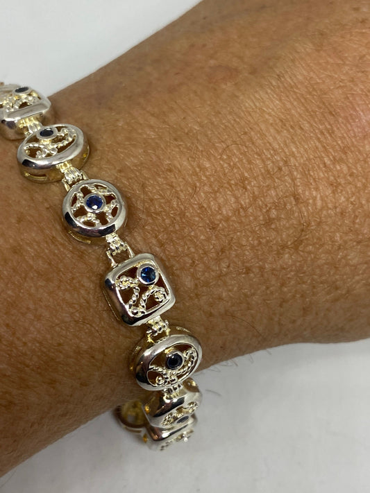 Handmade Genuine Blue Sapphire 925 Sterling Silver Tennis Bracelet