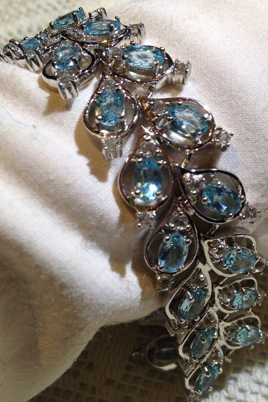 Handmade Blue Topaz in 925 Sterling Silver Tennis Bracelet