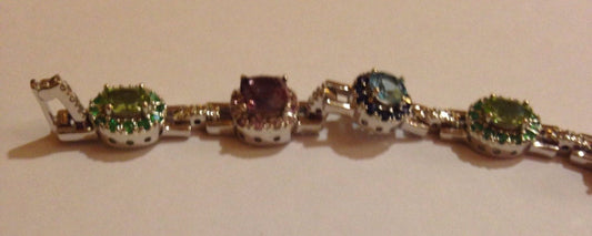 Handmade Garnet Amethyst Citrine Peridot in 925 Sterling Silver Tennis Bracelet