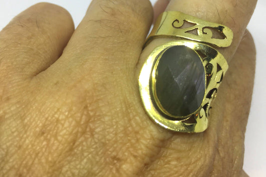 Vintage Large Green Labradorite Adjustable Bronze Ring