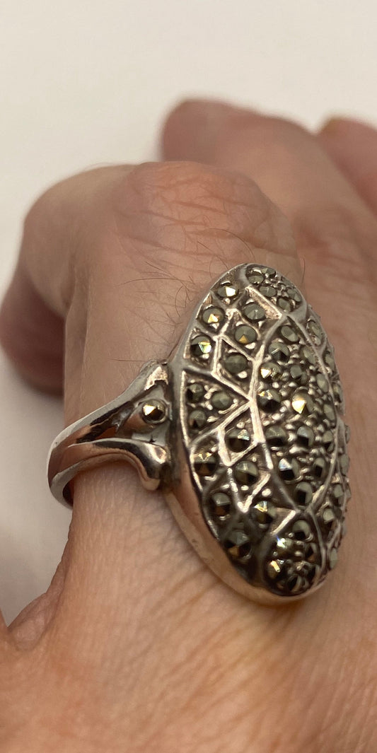 Vintage Marcasite 925 Sterling Silver Cocktail Ring