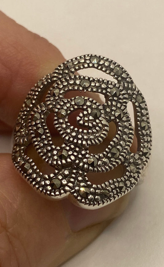Vintage Marcasite Rose 925 Sterling Silver Ring
