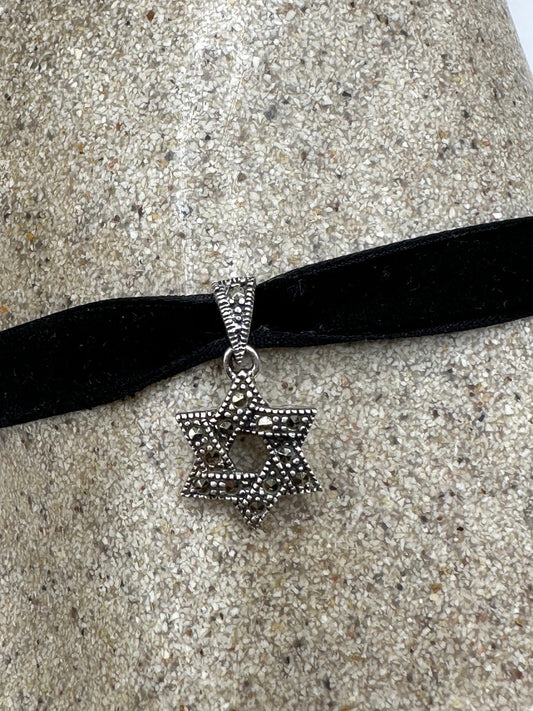 Vintage Marcasite Star of David Choker 925 Sterling Silver Pendant Necklace
