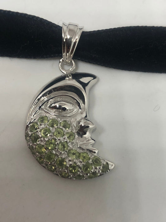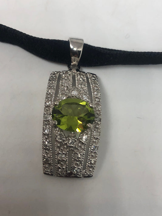 Vintage Peridot Choker 925 Sterling Silver Deco Pendant