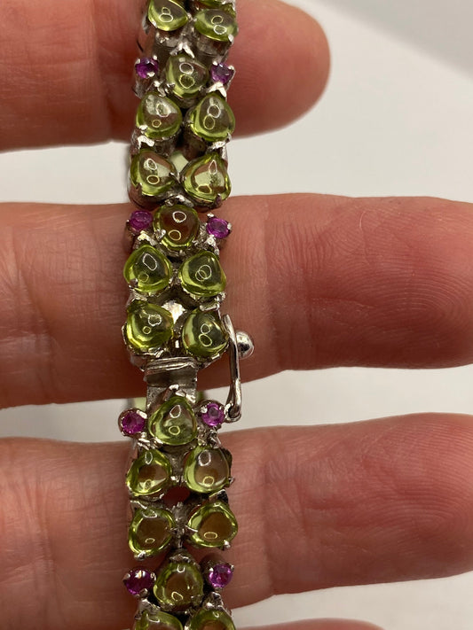Vintage Peridot Amethyst 925 Sterling Silver Tennis Bracelet