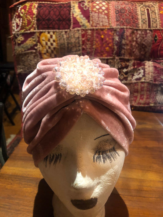 Vintage Pink Stretch Velvet Deco Turban Hat