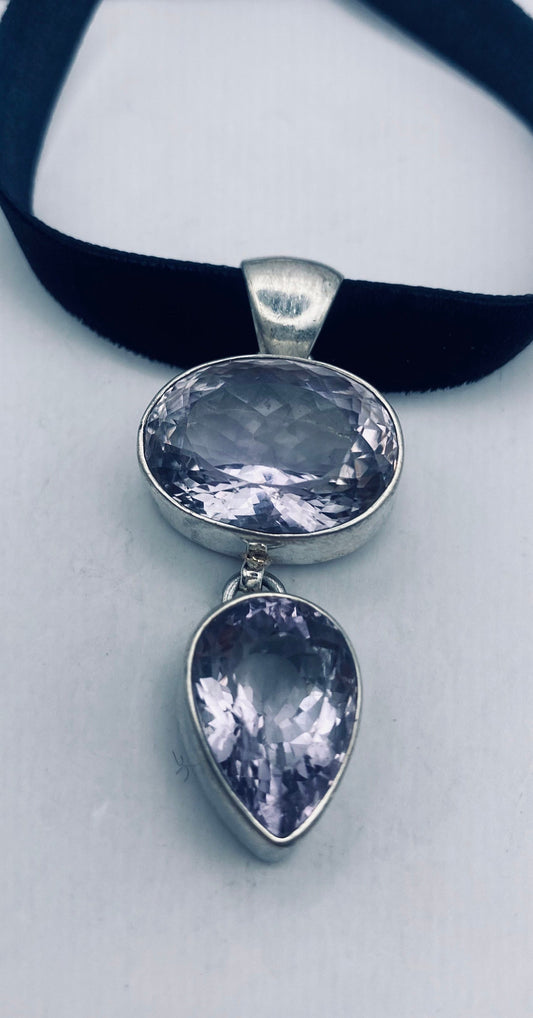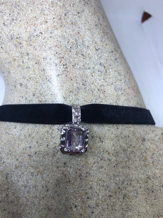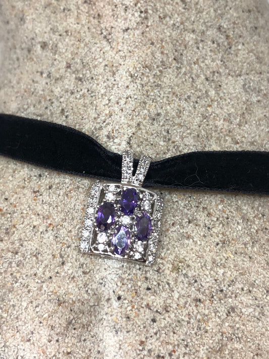 Vintage Purple Amethyst Choker 925 Sterling Silver Pendant