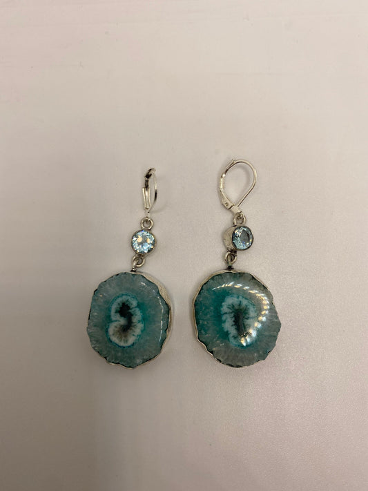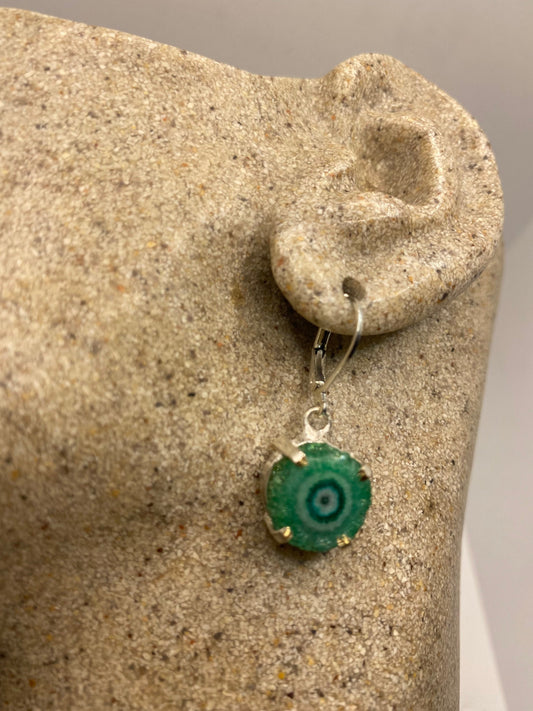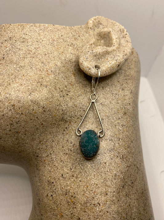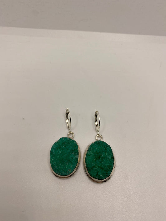 Vintage 925 Sterling Silver Chrome Diopside Drusy Chandelier Earrings