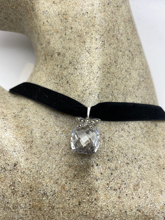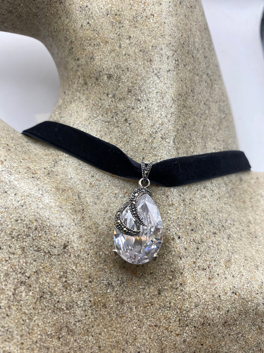 Vintage 925 Sterling Silver Clear Crystal Marcasite Choker Necklace