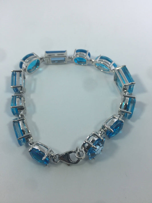 Handmade Genuine Blue Quartz and Blue Topaz 925 Sterling Silver Tennis Bracelet