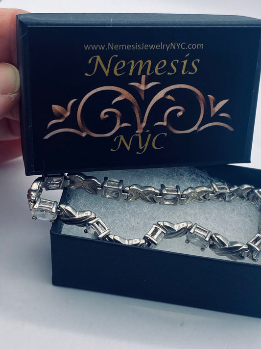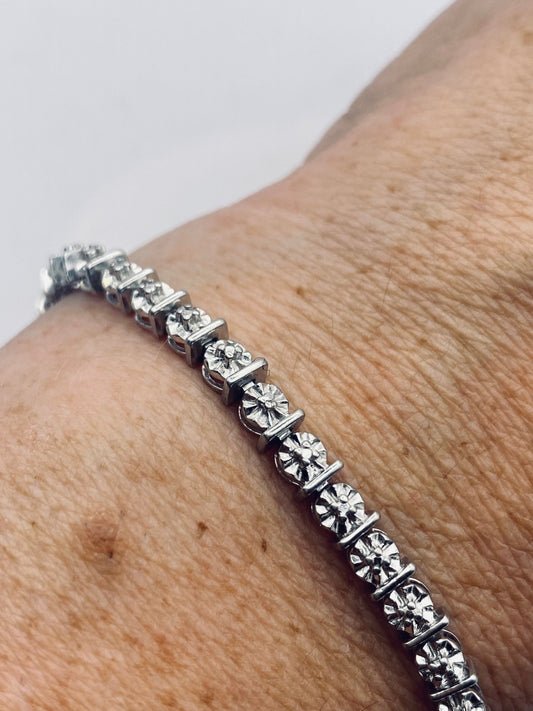 Vintage White Sapphires 925 Sterling Silver Tennis Bracelet