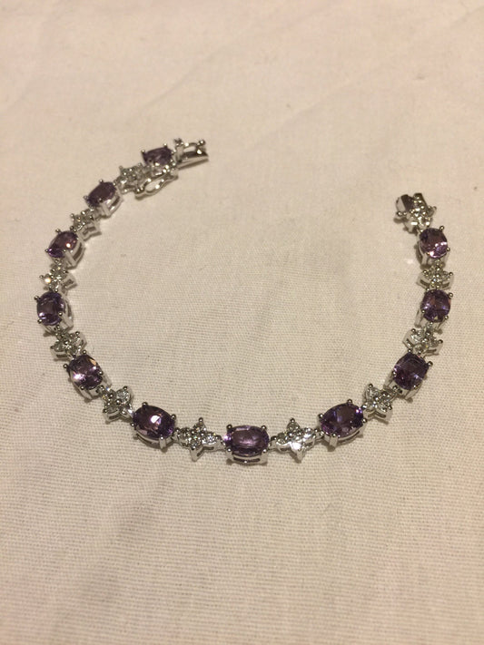 Vintage Purple Amethyst Tennis Bracelet in 925 Sterling Silver