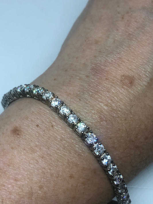 Vintage Cubic Zirconia Bracelet 925 Sterling Silver Tennis