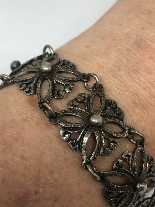 Vintage 925 Sterling Silver Filigree Flower Bracelet