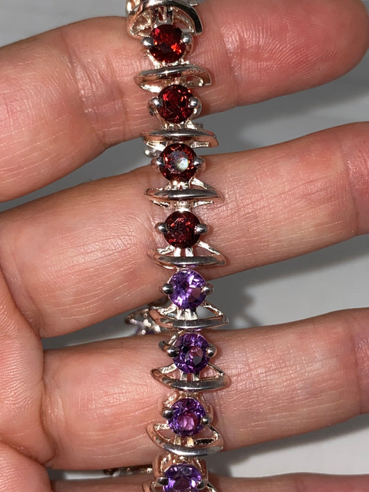 Vintage Garnet Amethyst in 925 Sterling Silver Tennis Bracelet