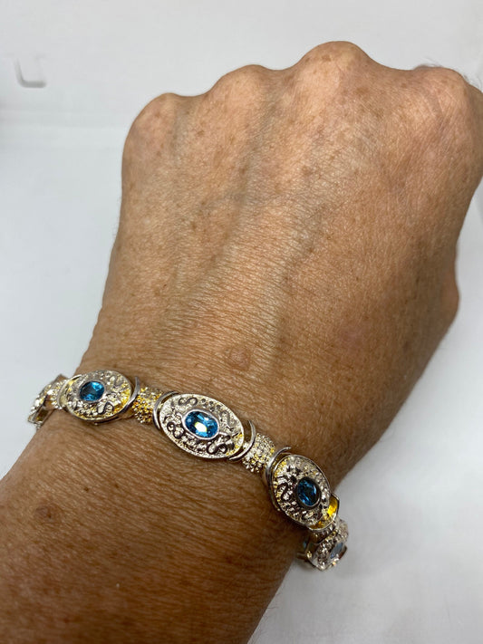 Vintage Blue Topaz Bracelet 925 Sterling Silver 7.5 Inch Tennis