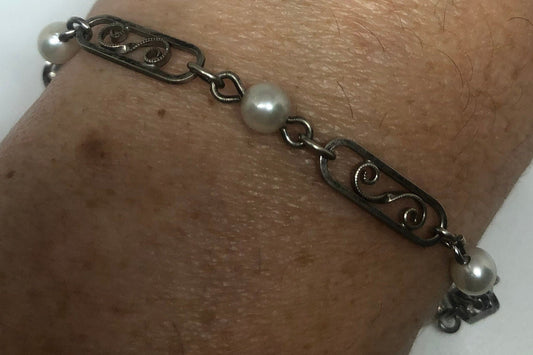 Vintage Pearl Bracelet in 925 Sterling Silver
