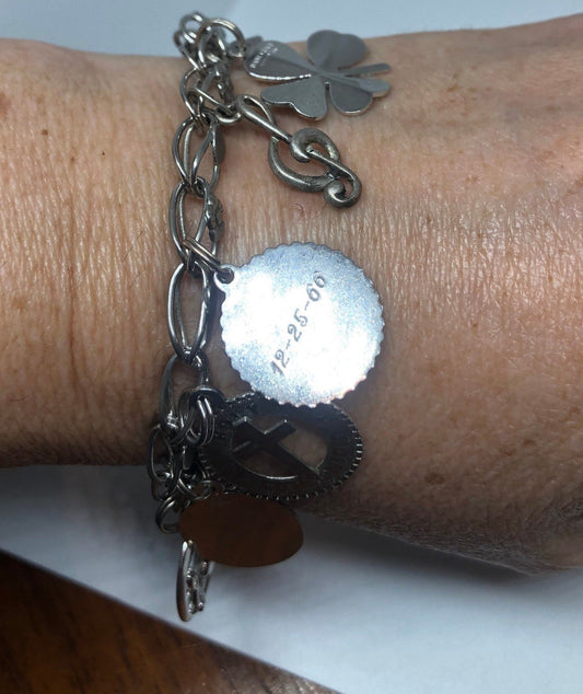 Vintage 925 Sterling Silver Link Cross Charm Bracelet
