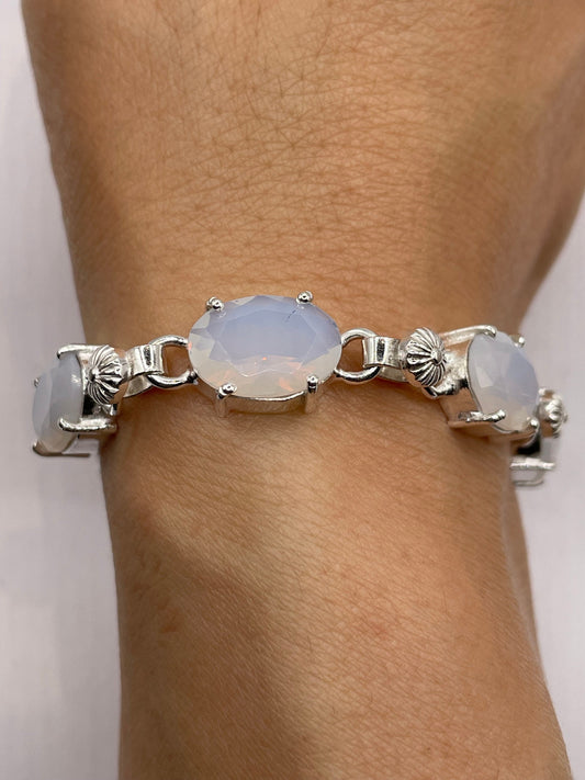 Vintage White Opal glass Silver Tennis Bracelet