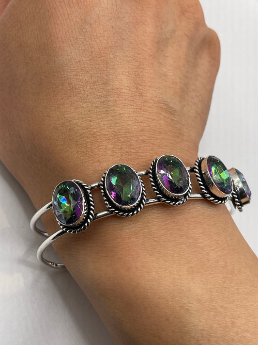 Vintage Mystic Topaz Bangle Cuff Bracelet