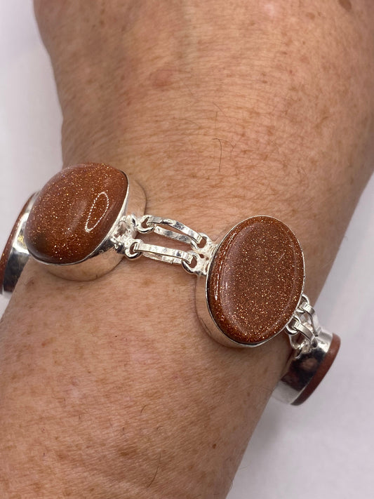 Vintage goldstone Silver Statement Chain Bracelet