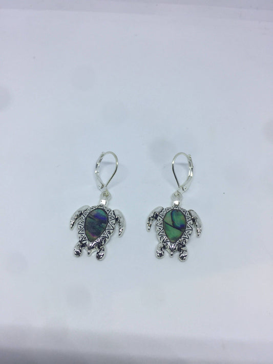 Vintage Handmade Silver Rainbow Abalone Sea Turtle Earrings