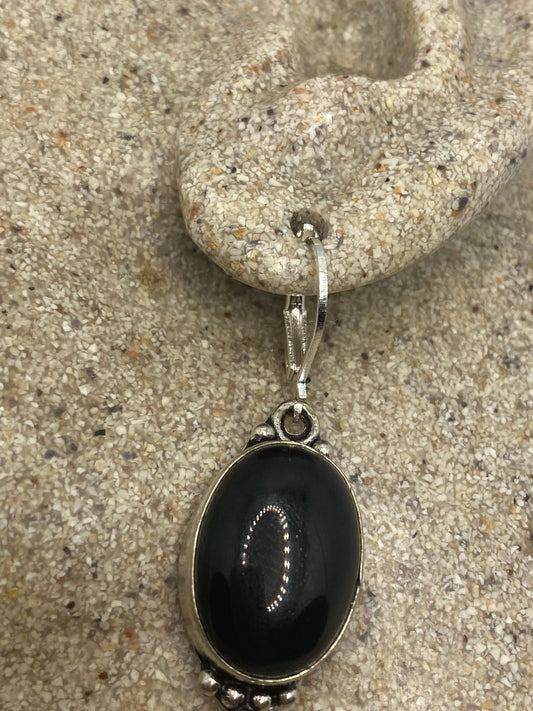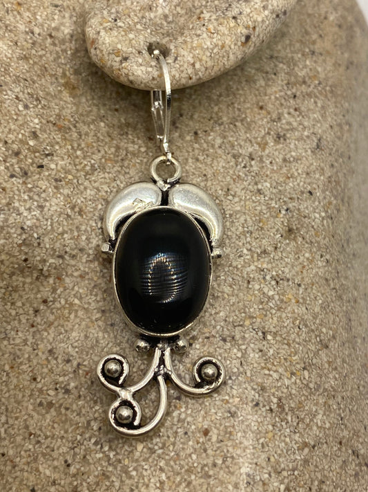 Vintage Black Onyx Earrings 925 Sterling Silver Deco Dangle Chandelier