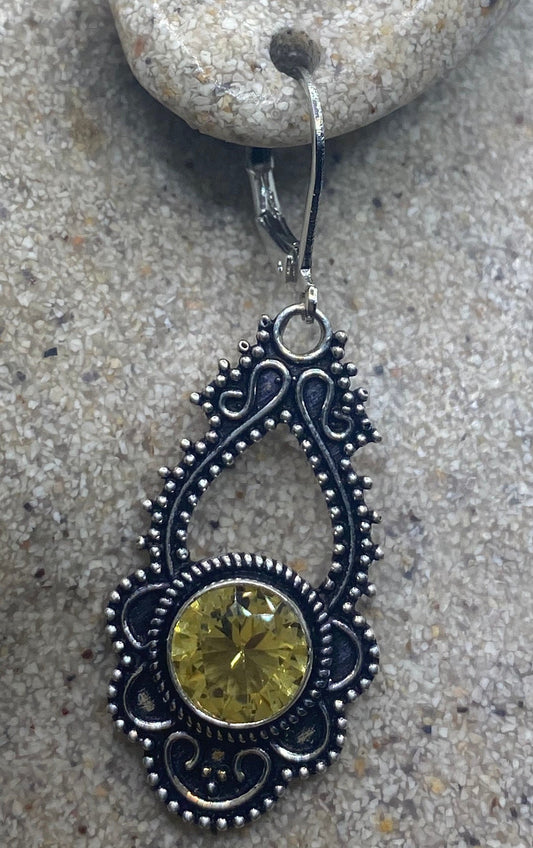 Vintage Citrine 925 Sterling Silver Lever Back Earrings