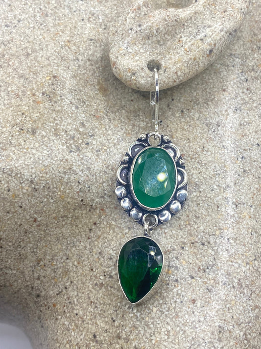 Vintage Green Crystal Glass Earrings 925 Sterling Silver Leverback