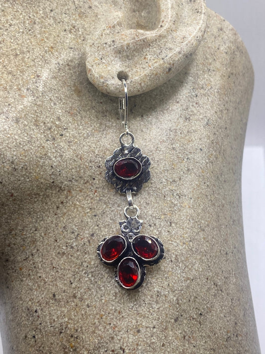 Vintage Red Ruby Glass Earrings 925 Sterling Silver Leverback
