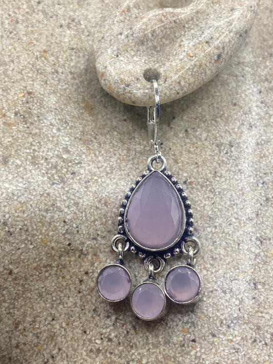 Vintage Rose Quartz Sterling Silver Lever Back Dangle Earrings