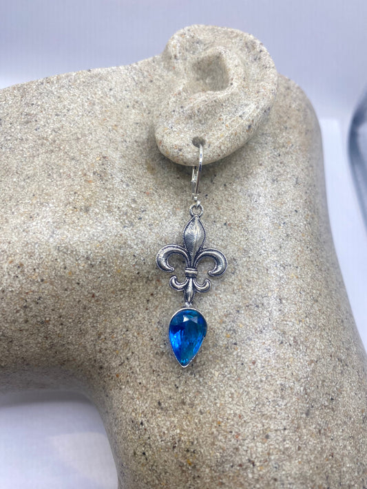 Antique Vintage Aqua Blue Volcanic Glass Silver Dangle Earrings