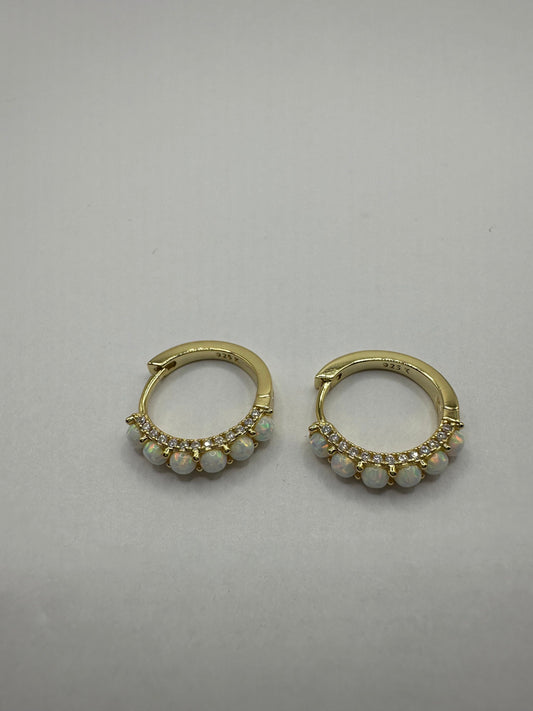Vintage White Opal Earrings White Sapphire golden 925 Sterling Silver Hoops