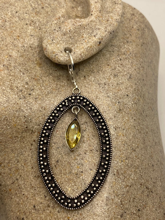 Vintage Citrine 925 Sterling Silver Lever Back Earrings