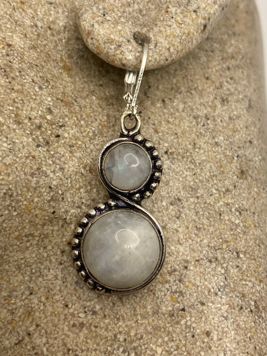 Vintage Rainbow Moonstone Sterling Silver Lever Back leaf Dangle Earrings