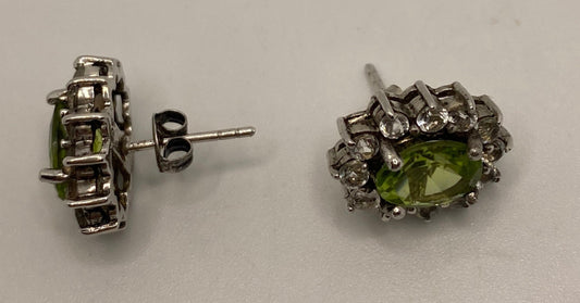 Vintage Green Peridot in 925 Sterling Silver Post Button Earrings